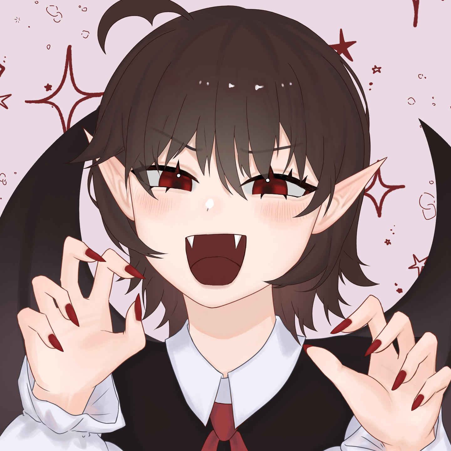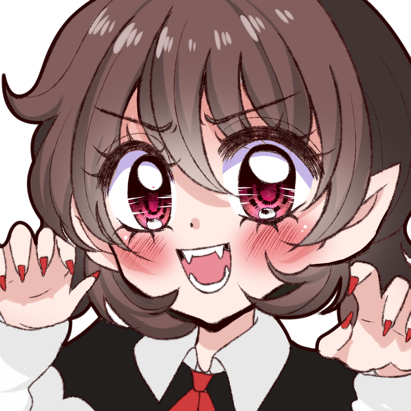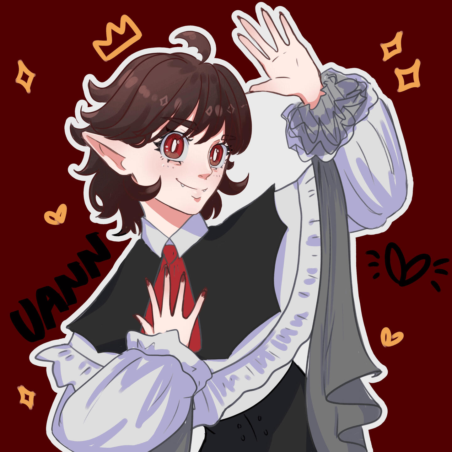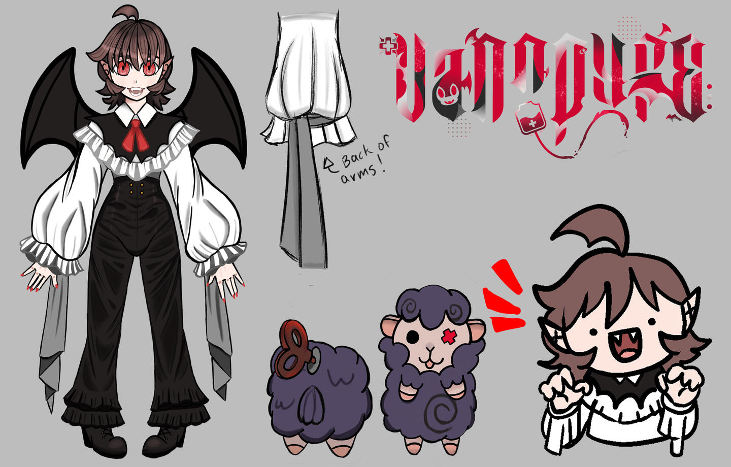 1/50000 is the rarity of an Unvampire, and Vann is one of those rare cases!Being an Unvampire allows for Vann to go outside in the sun, eat garlic, be near holy symbols, and more! Vann also makes blood through intense emotions such as love, anger, and sadness through nose bleeds or coughing up blood. When she produces blood, is when she will take blood as she needs to make up for the blood produced/lost.After biting a human villager after falling in love with them, humans entered her vampiric castle with her family and friends inside, killing Vann's father and forcing her and the rest of the monsters to flee.After viewing other monsters and streamers being able to be themselves, Vann decided to get into streaming to meet new people and make friends/socialize with the humans more!