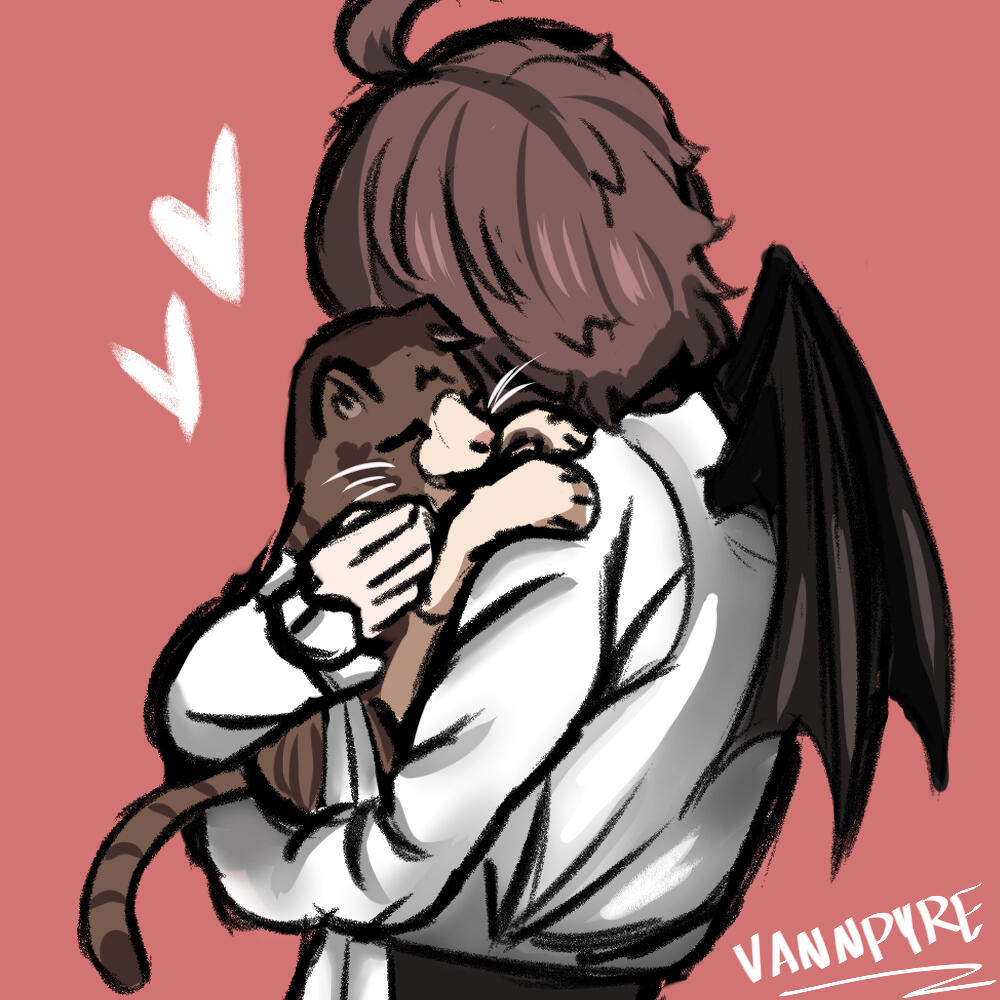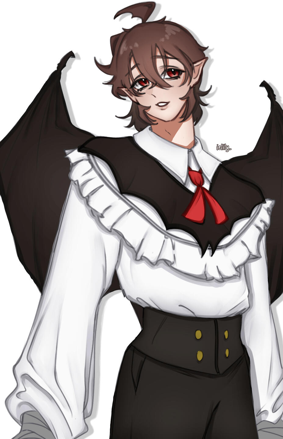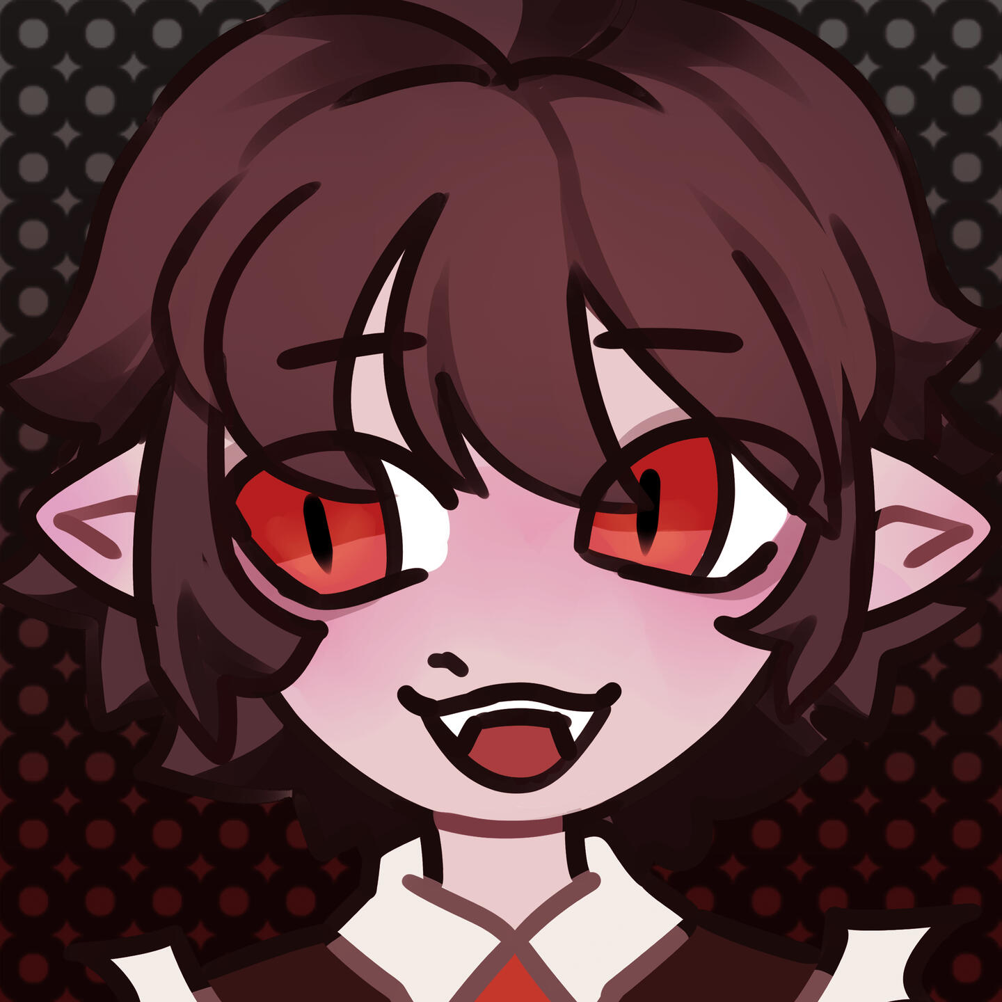 1/50000 is the rarity of an Unvampire, and Vann is one of those rare cases!Being an Unvampire allows for Vann to go outside in the sun, eat garlic, be near holy symbols, and more! Vann also makes blood through intense emotions such as love, anger, and sadness through nose bleeds or coughing up blood. When she produces blood, is when she will take blood as she needs to make up for the blood produced/lost.After biting a human villager after falling in love with them, humans entered her vampiric castle with her family and friends inside, killing Vann's father and forcing her and the rest of the monsters to flee.After viewing other monsters and streamers being able to be themselves, Vann decided to get into streaming to meet new people and make friends/socialize with the humans more!