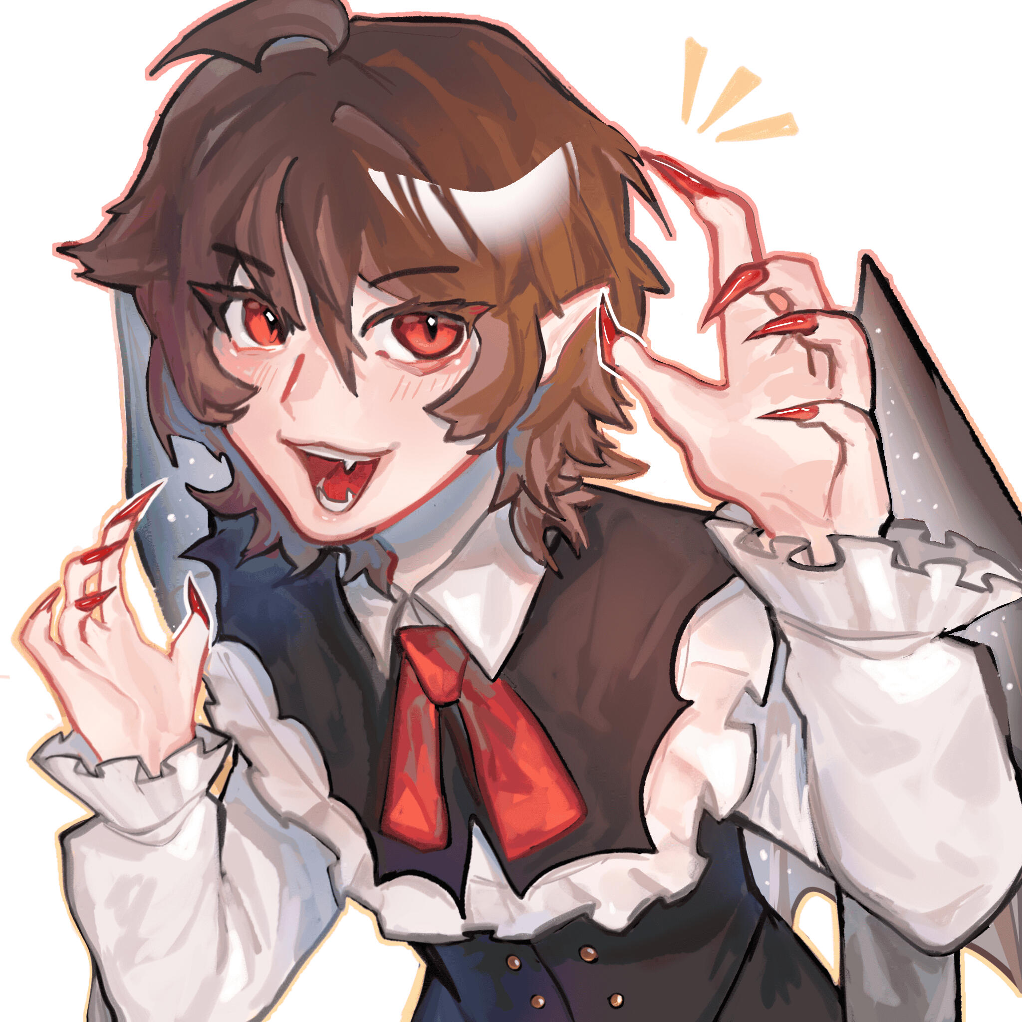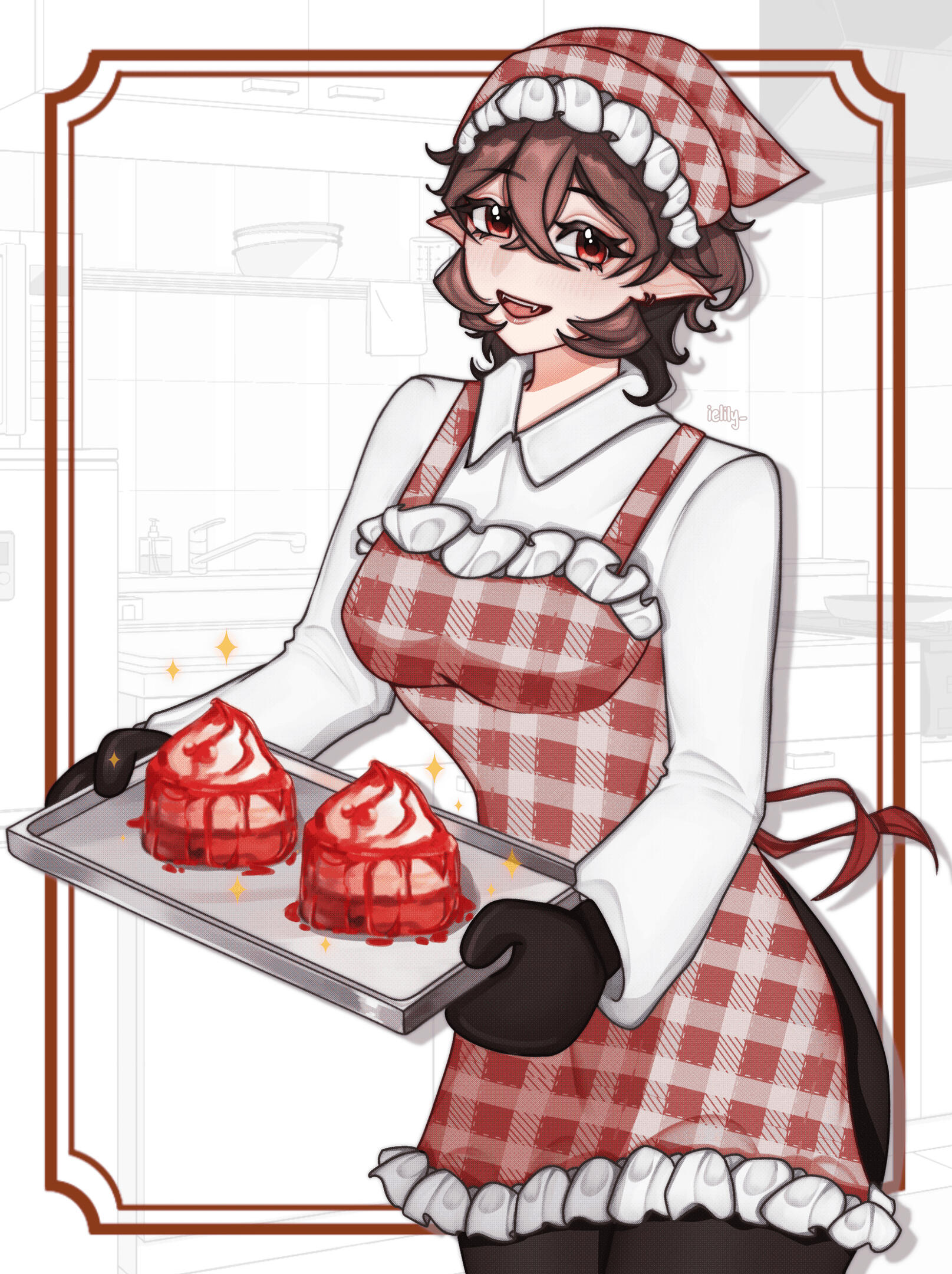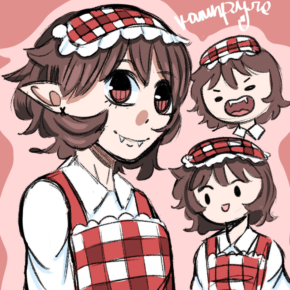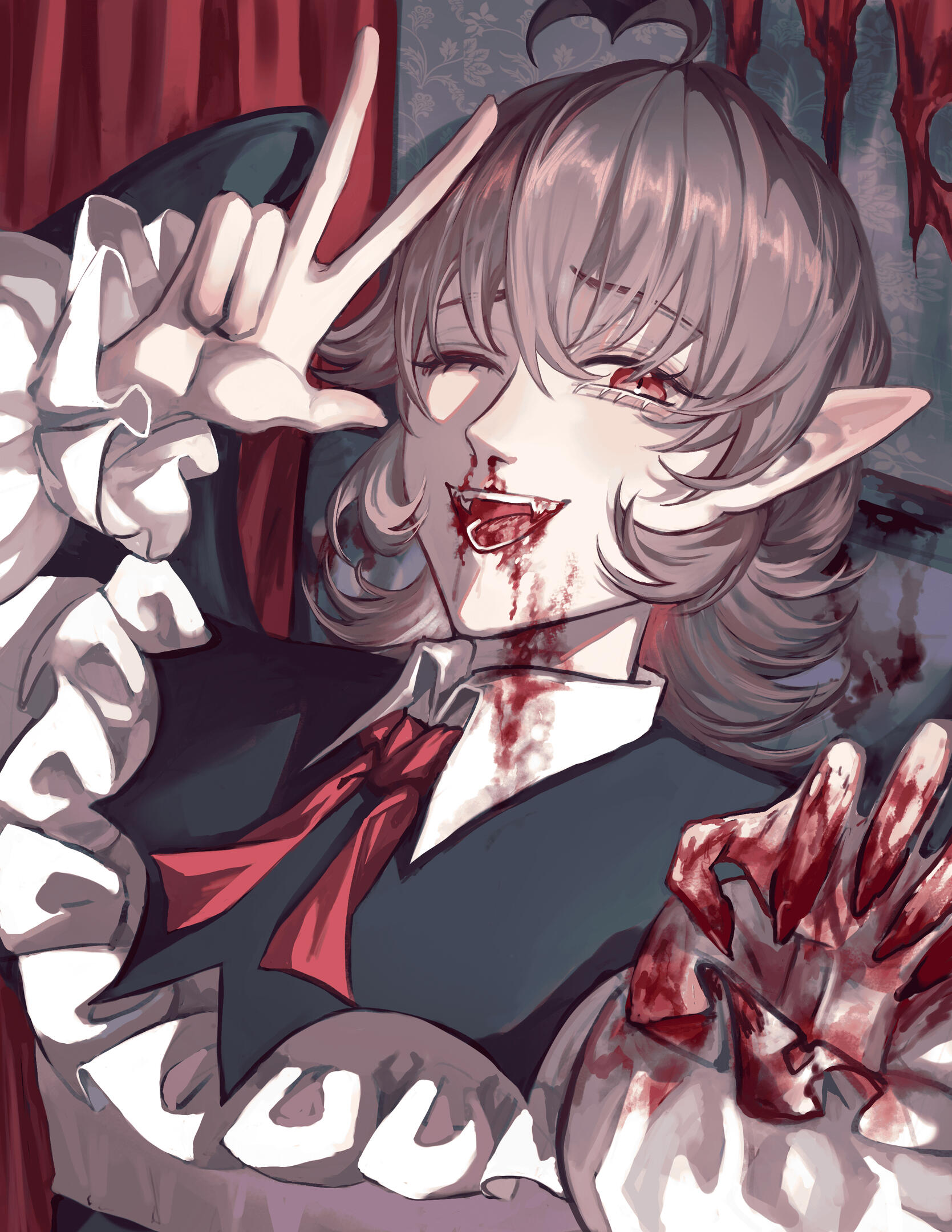 1/50000 is the rarity of an Unvampire, and Vann is one of those rare cases!Being an Unvampire allows for Vann to go outside in the sun, eat garlic, be near holy symbols, and more! Vann also makes blood through intense emotions such as love, anger, and sadness through nose bleeds or coughing up blood. When she produces blood, is when she will take blood as she needs to make up for the blood produced/lost.After biting a human villager after falling in love with them, humans entered her vampiric castle with her family and friends inside, killing Vann's father and forcing her and the rest of the monsters to flee.After viewing other monsters and streamers being able to be themselves, Vann decided to get into streaming to meet new people and make friends/socialize with the humans more!